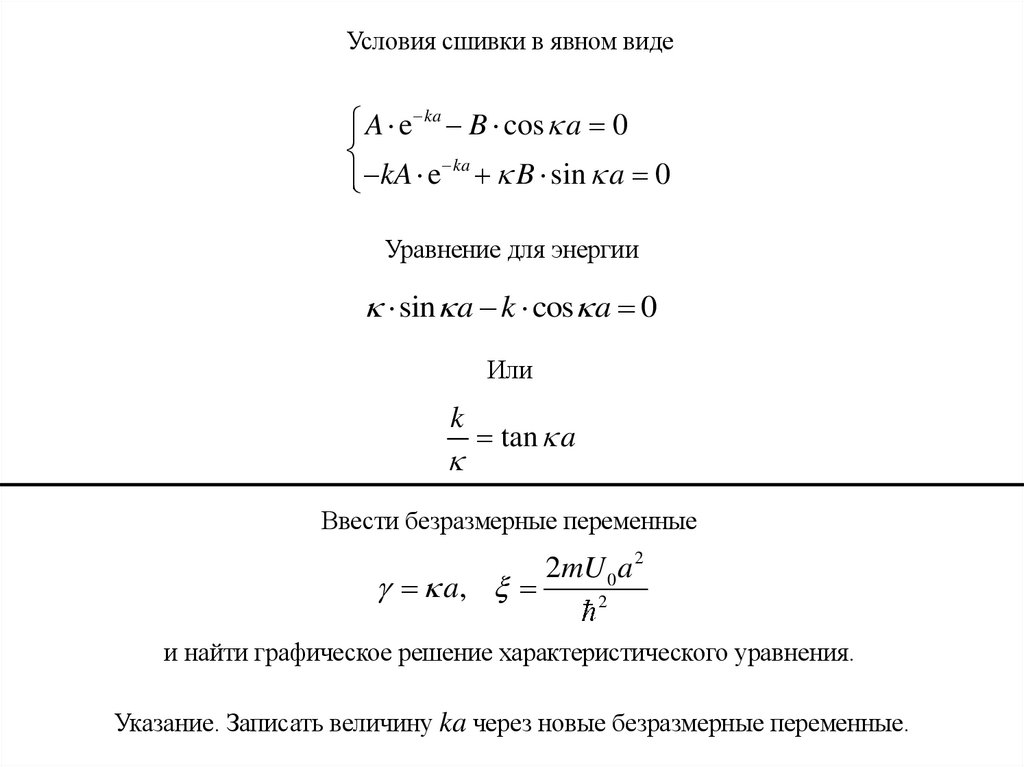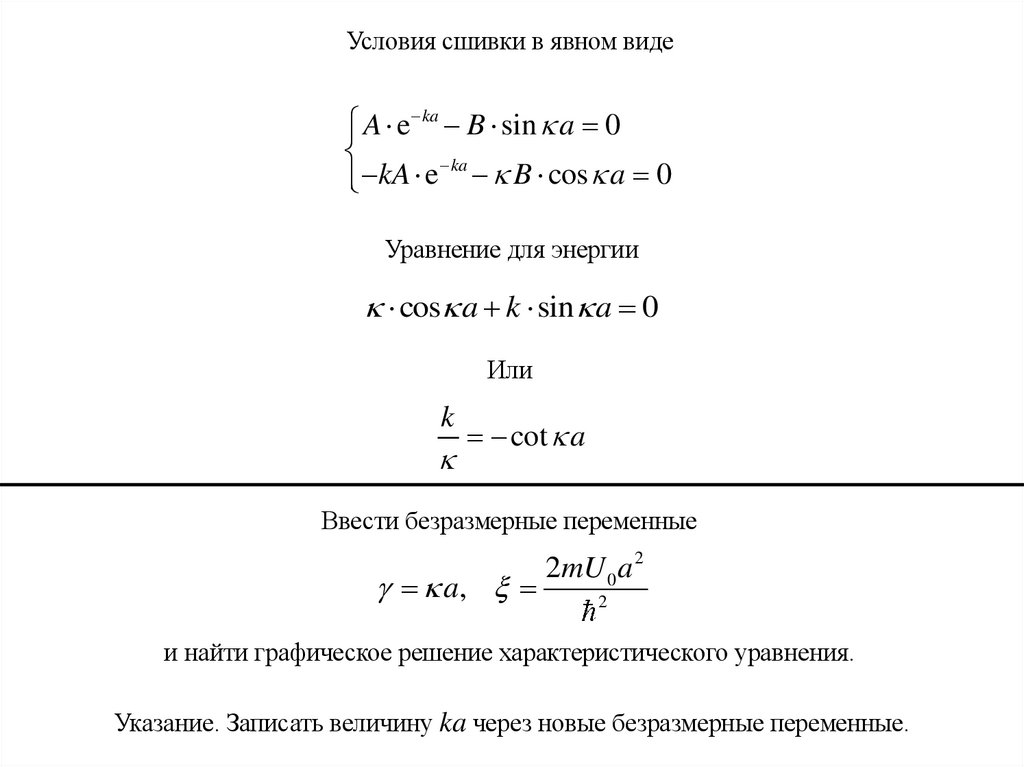 Условия сшивки в явном видеA e ka B sin a 0