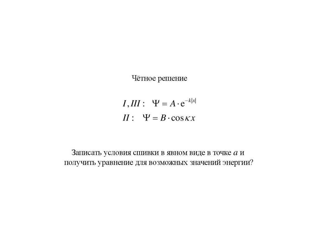 Для собственных функций оператора чётности достаточно удовлетворить условиям сшивки