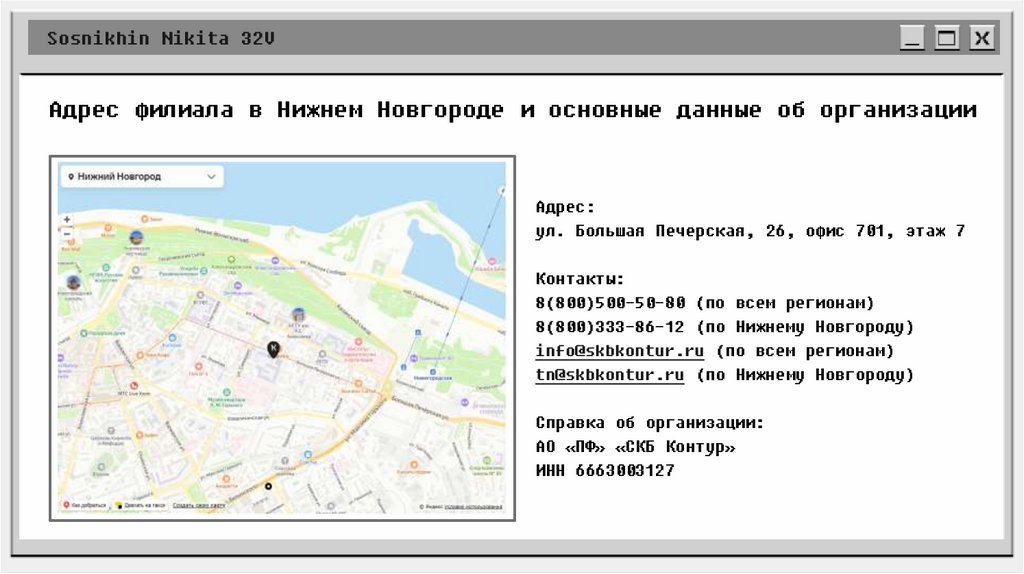 Sosnikhin Nikita 32VАдрес филиала в Нижнем Новгороде и основные данные об организации