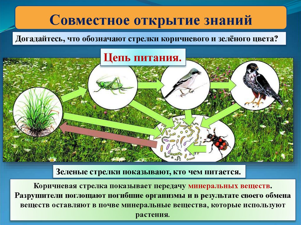 Совместное открытие знанийДогадайтесь, что обозначают стрелки коричневого и зелёного цвета?