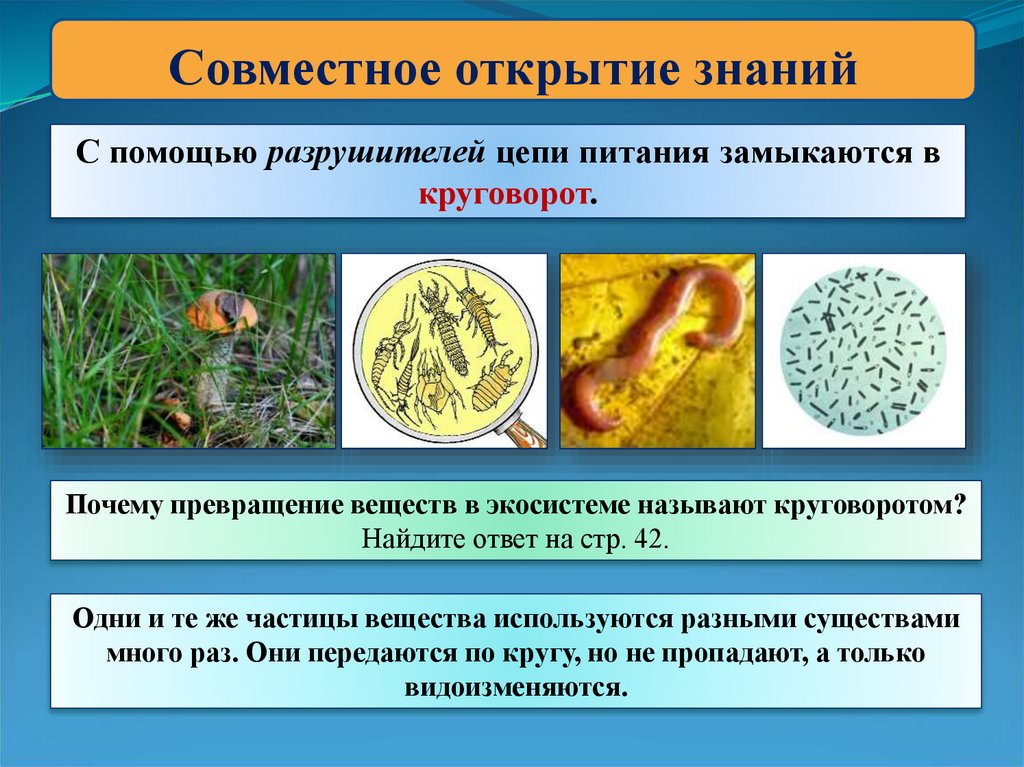 Разрушители поглощают погибшие организмы и в результате своего обмена