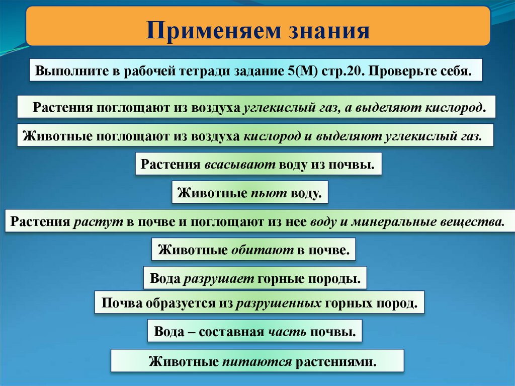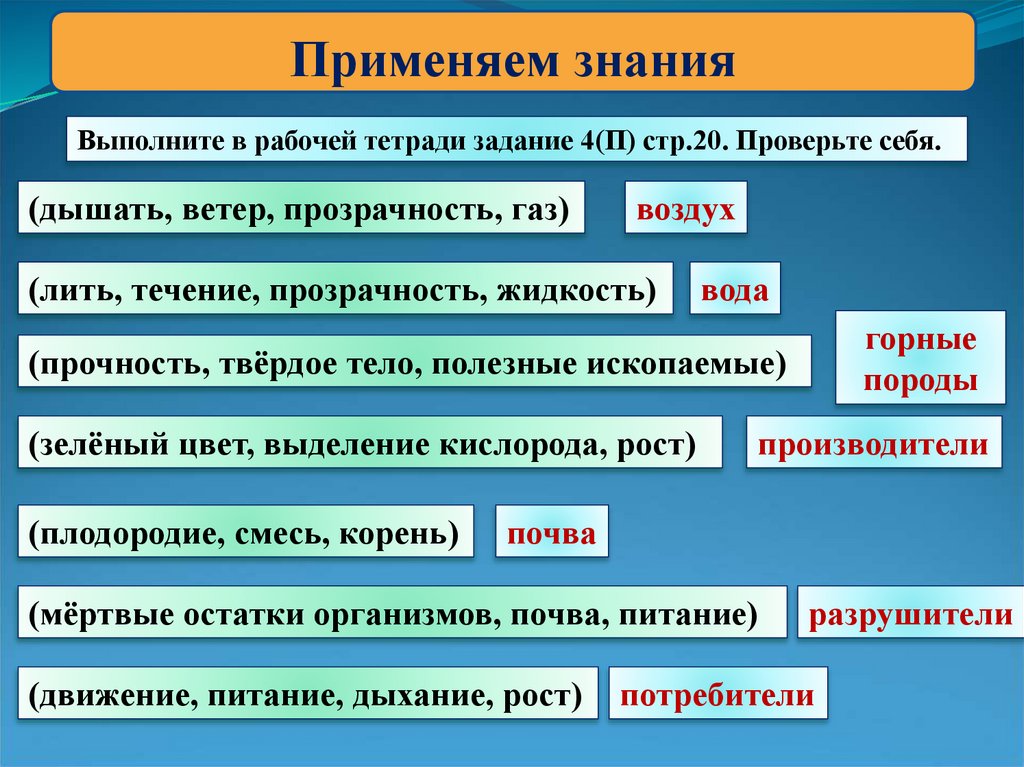 Применяем знанияВыполните в рабочей тетради задание 4(П) стр.20. Проверьте себя.