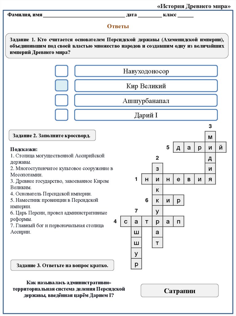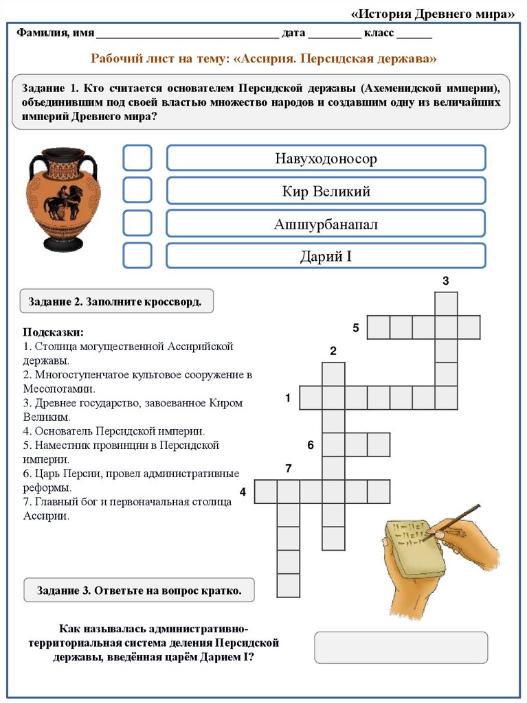 Рабочий лист на тему: «Ассирия. Персидская держава»
