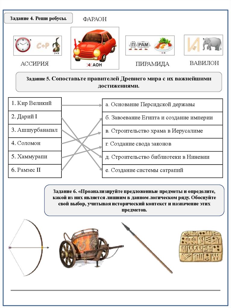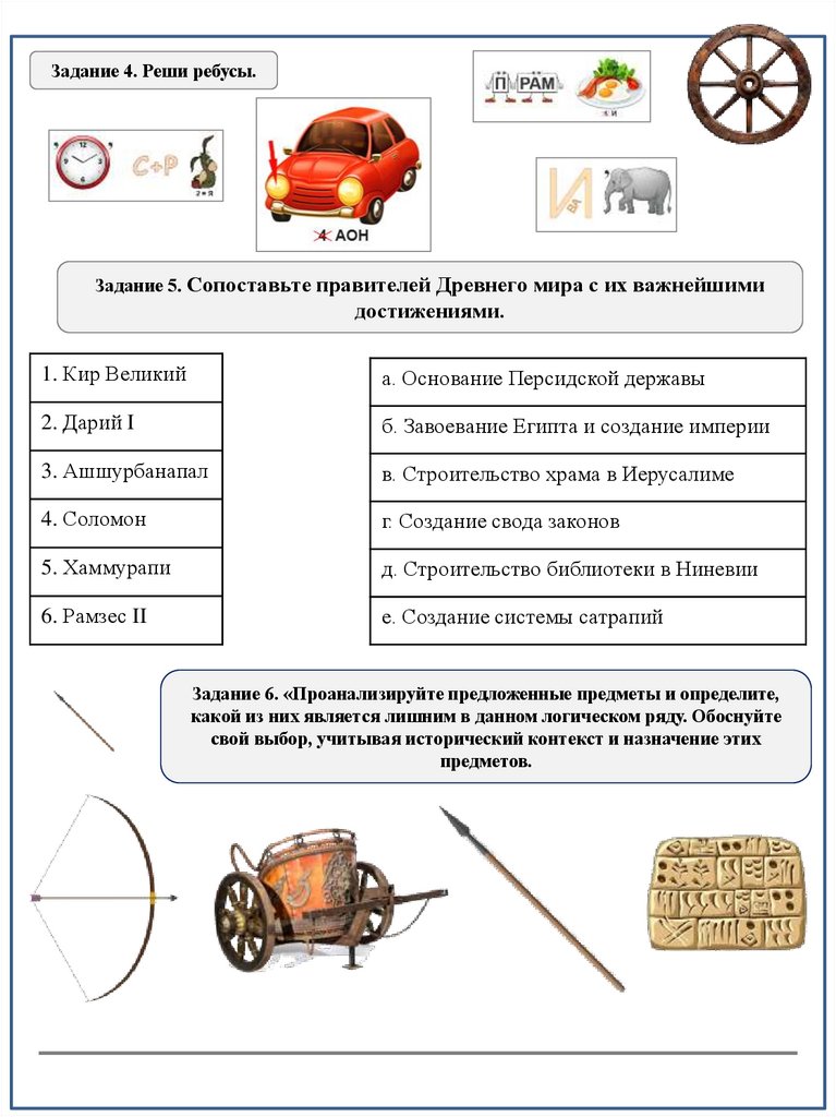 Задание 4. Реши ребусы.Задание 5. Сопоставьте правителей Древнего мира с их важнейшими
