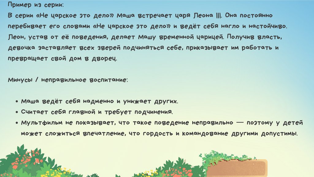 Мультфильм не показывает, что такое поведение неправильно — поэтому у детей