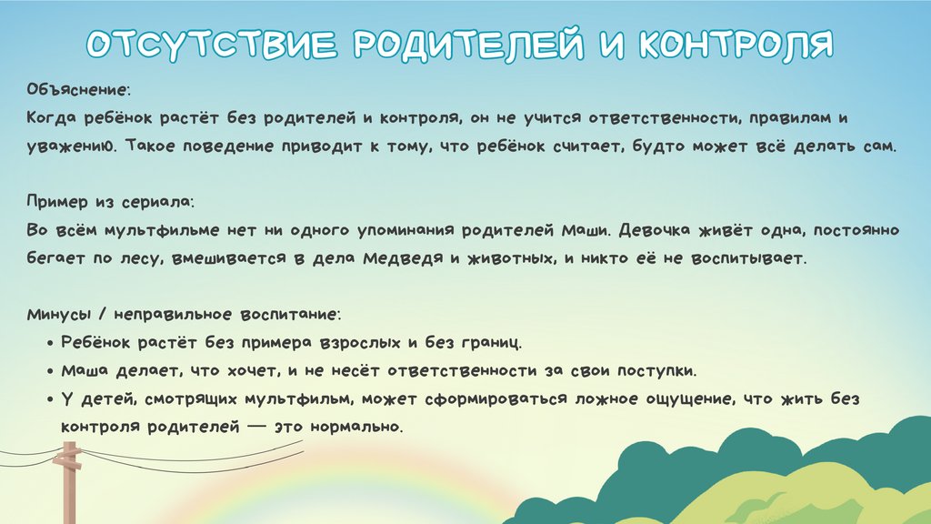 ОТСУТСТВИЕ РОДИТЕЛЕЙ И КОНТРОЛЯОбъяснение: