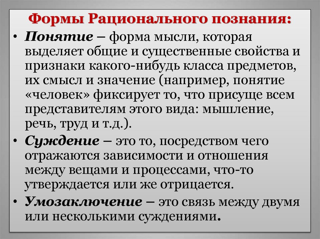 Формы Рационального познания:• Понятие – форма мысли, которая