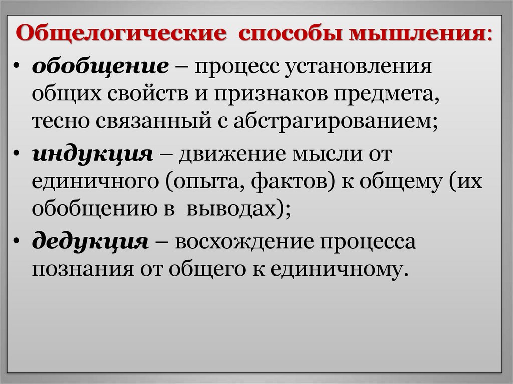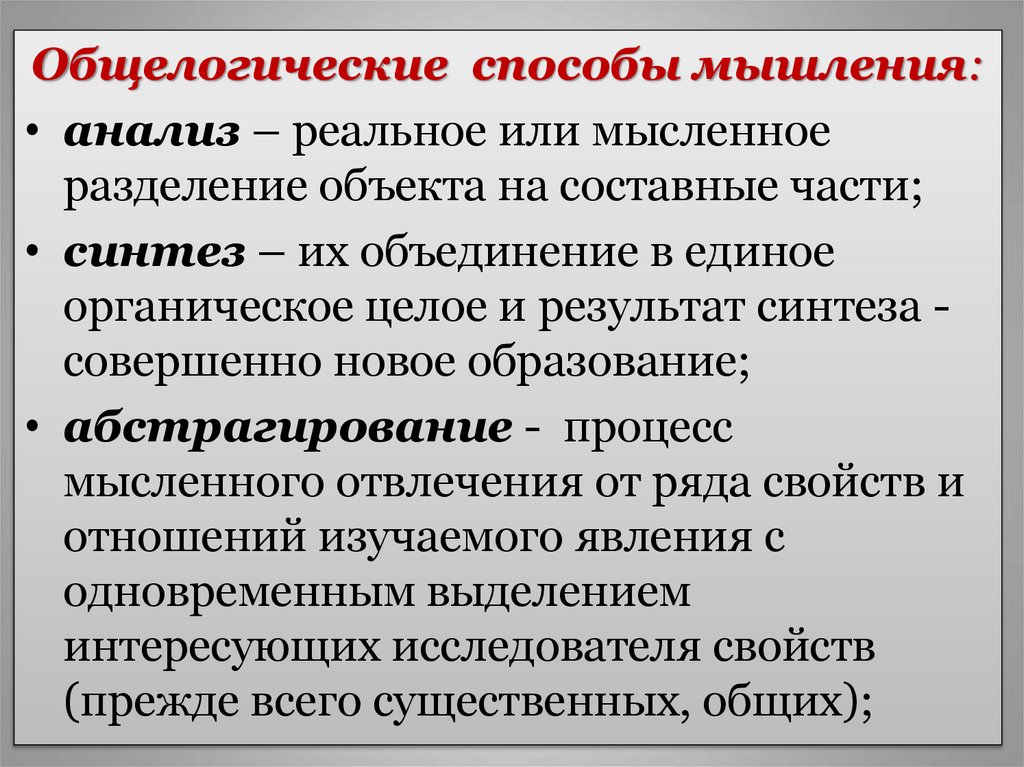 Общелогические способы мышления:• анализ – реальное или мысленное