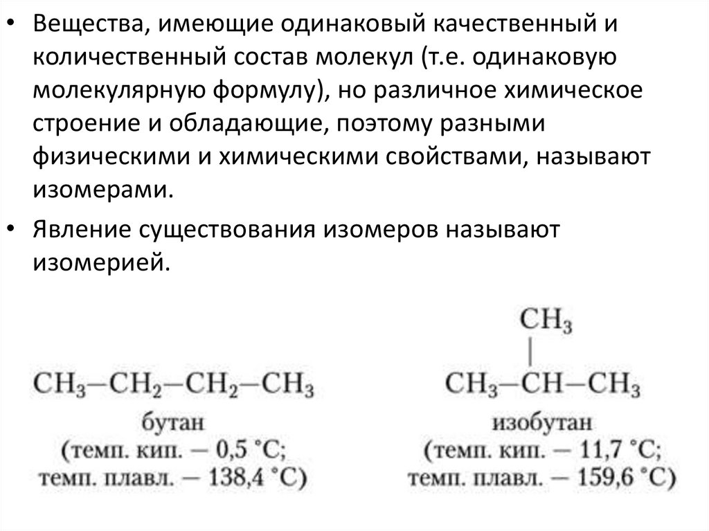 • Вещества, имеющие одинаковый качественный иколичественный состав молекул (т.е. одинаковую