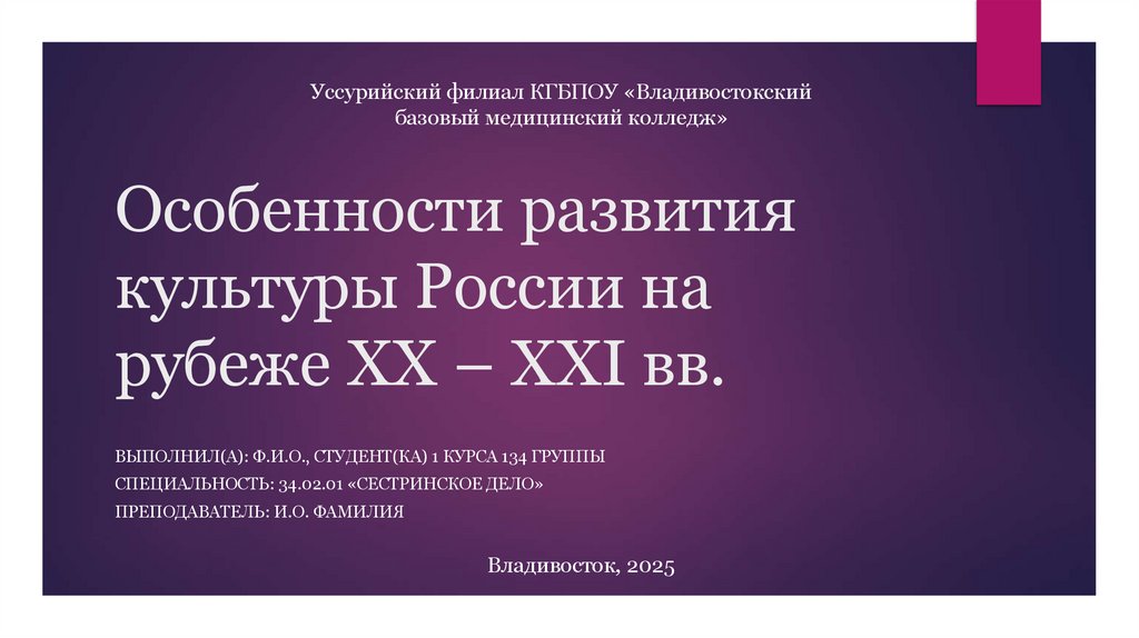 1. Особенности развития культуры России на рубеже XX – XXI вв.