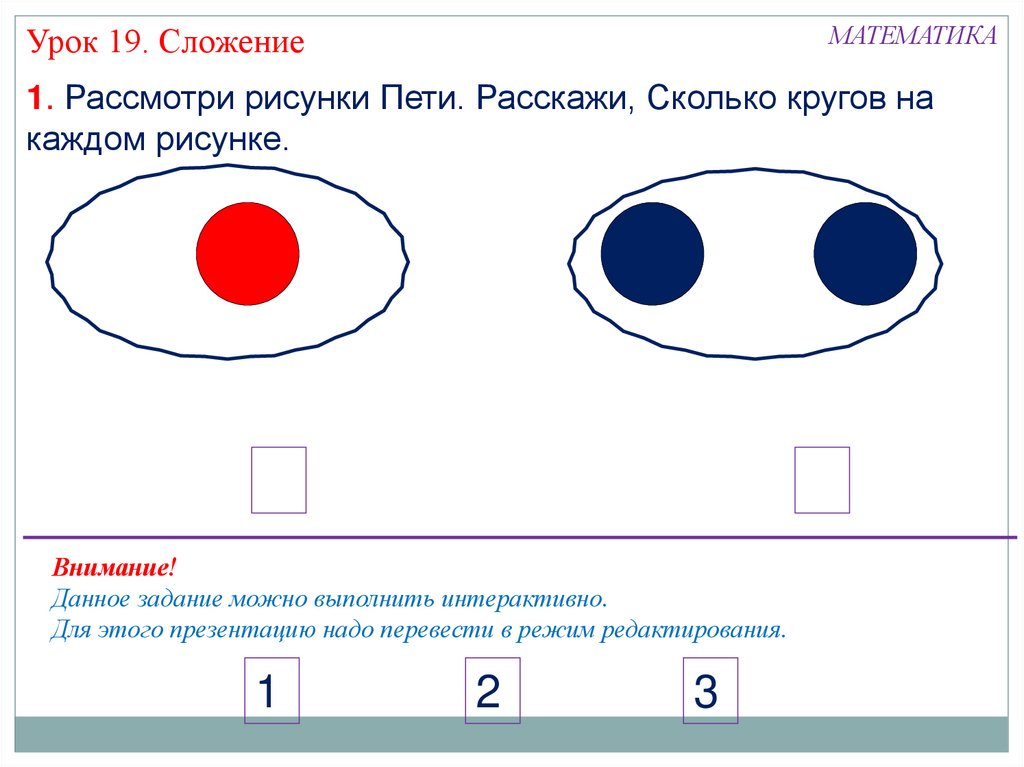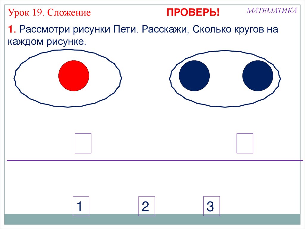 1. Рассмотри рисунки Пети. Расскажи, Сколько кругов на