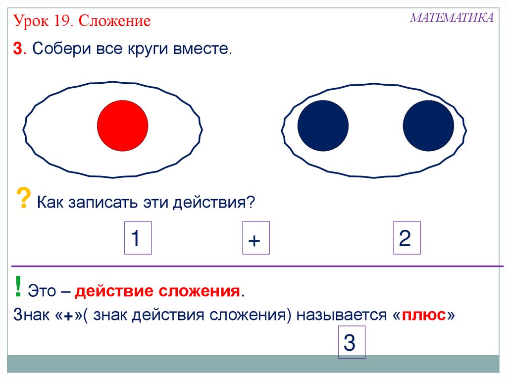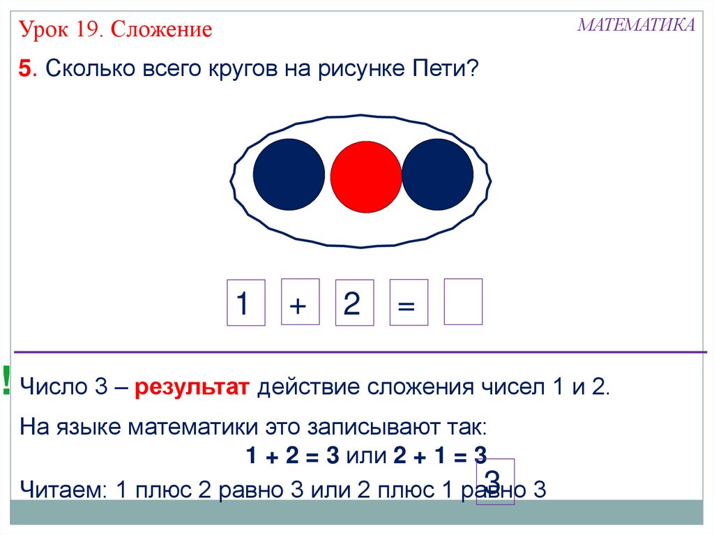 ! Число 3 – результат действие сложения чисел 1 и 2.