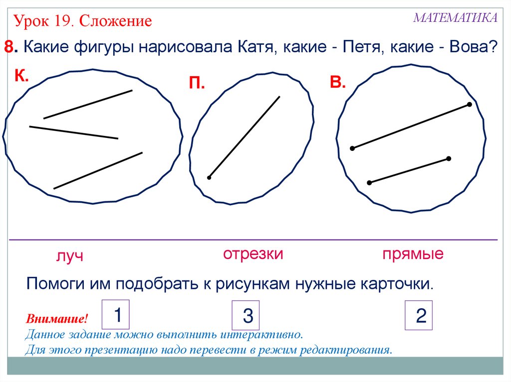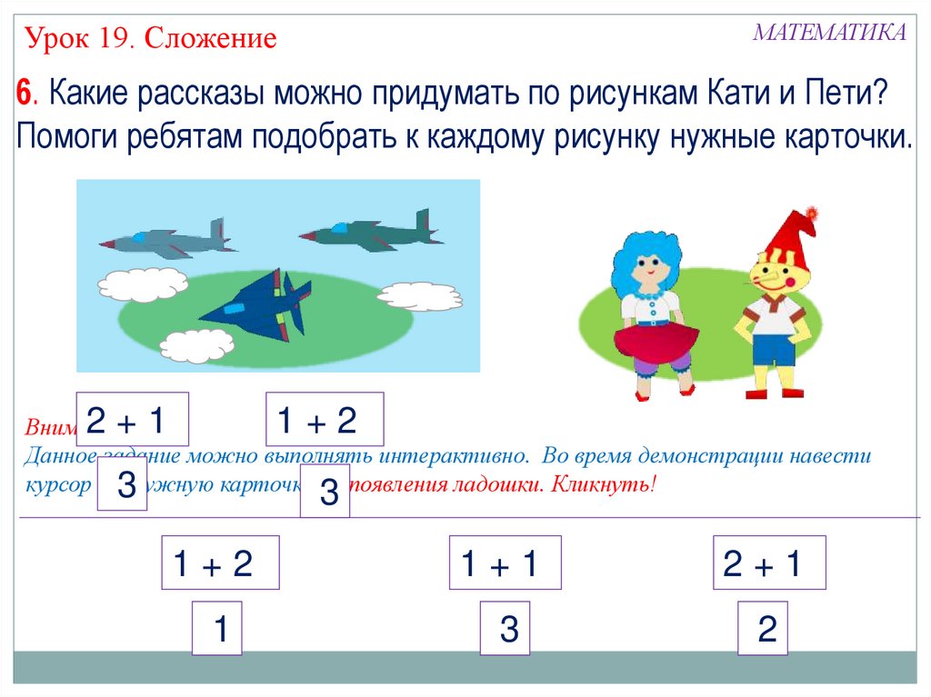 Некоторые задания можно выполнять интерактивно. Например, продолжить ряд,