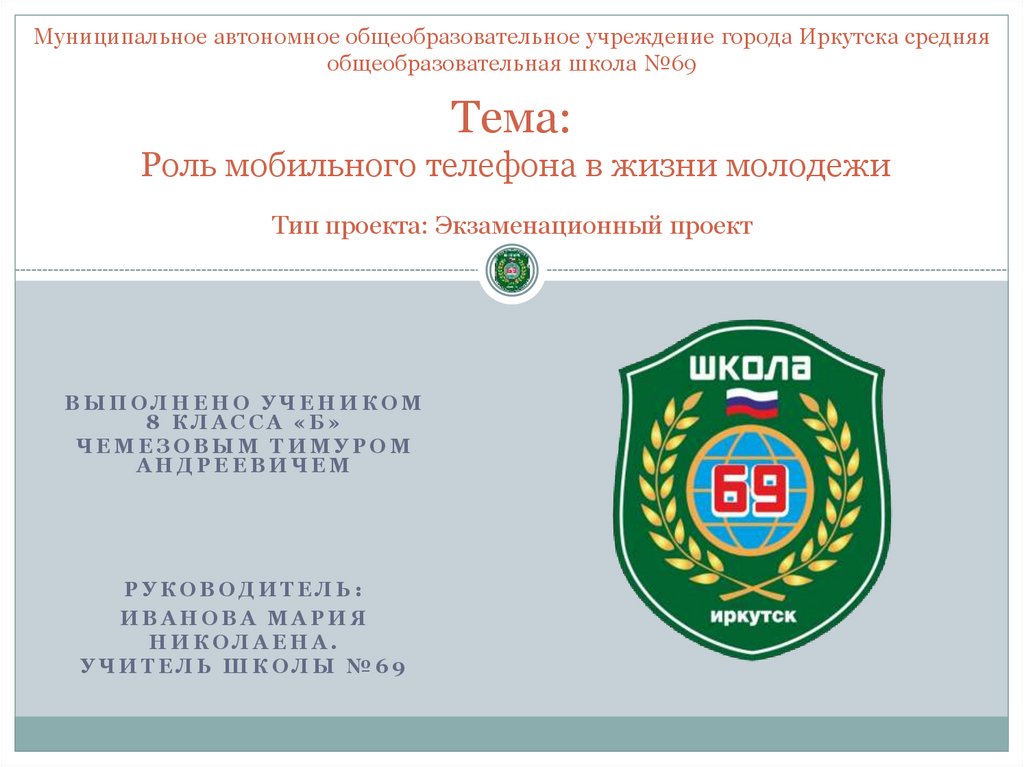 1. Муниципальное автономное общеобразовательное учреждение города Иркутска средняя общеобразовательная школа №69
