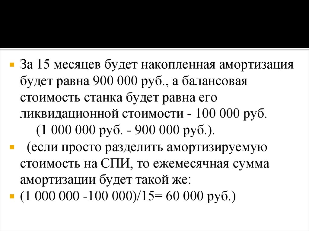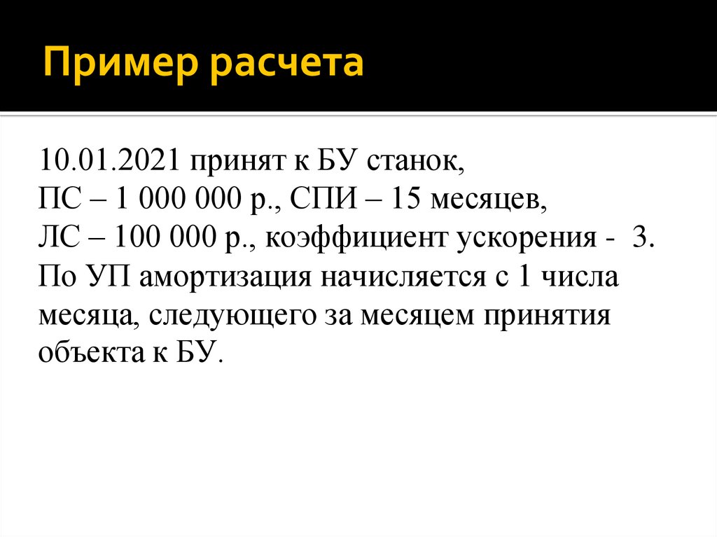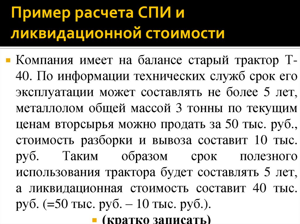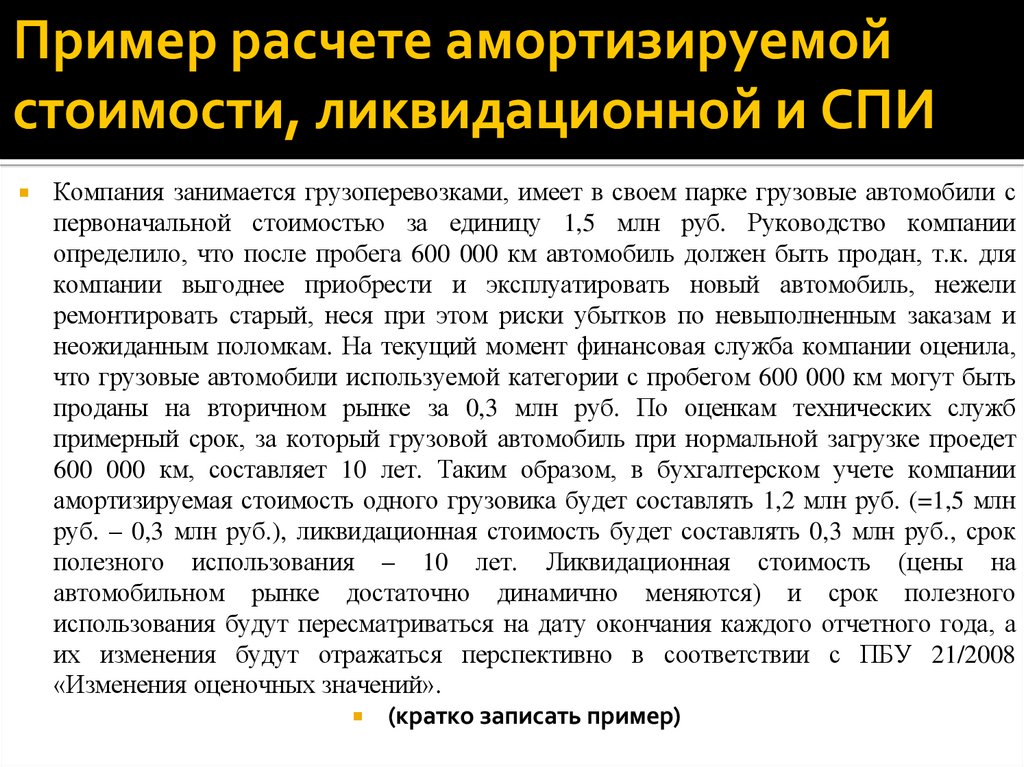 Пример расчете амортизируемойстоимости, ликвидационной и СПИ
