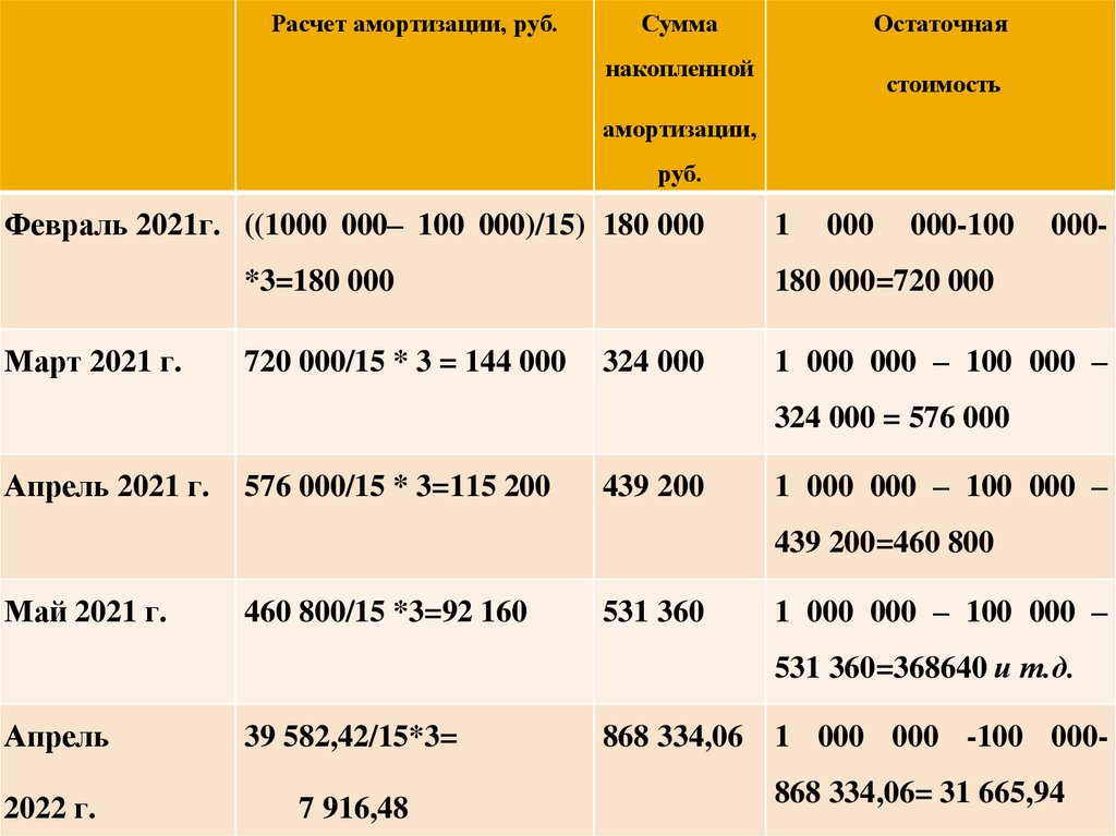 руб. – 0,3 млн руб.), ликвидационная стоимость будет составлять 0,3 млн руб., срок