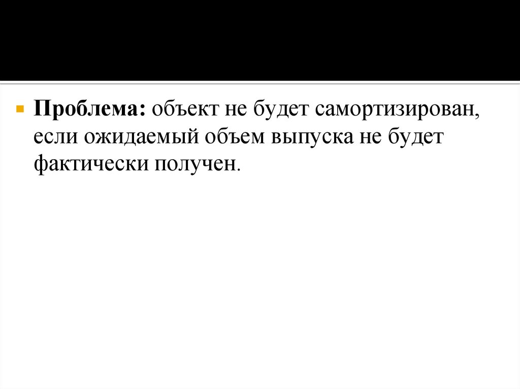 Проблема: объект не будет самортизирован,если ожидаемый объем выпуска не будет