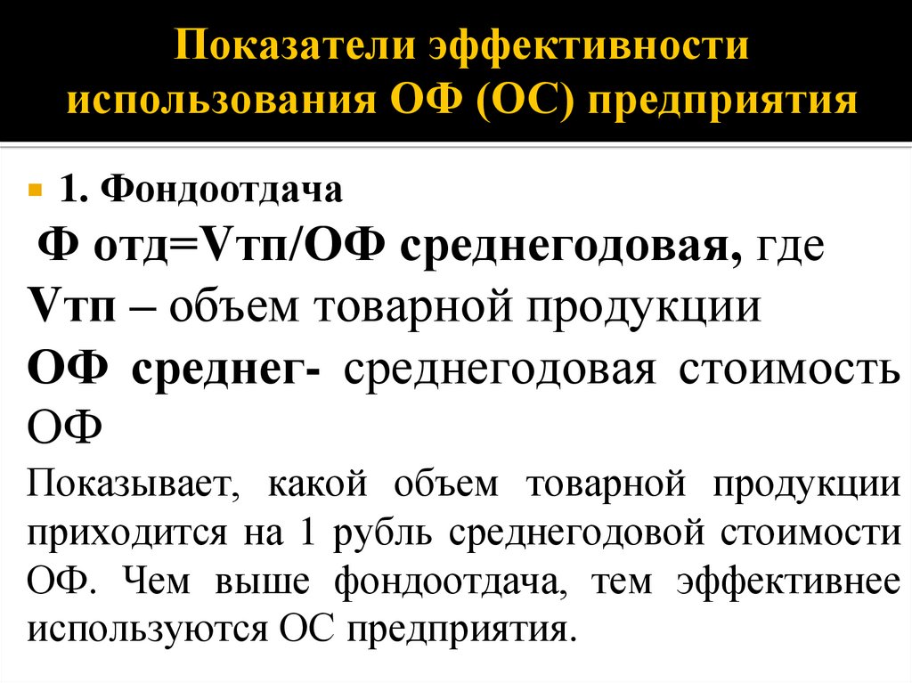 ОФ. Чем выше фондоотдача, тем эффективнее