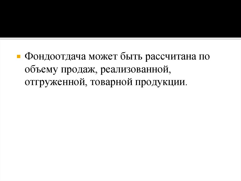 Фондоотдача может быть рассчитана пообъему продаж, реализованной,