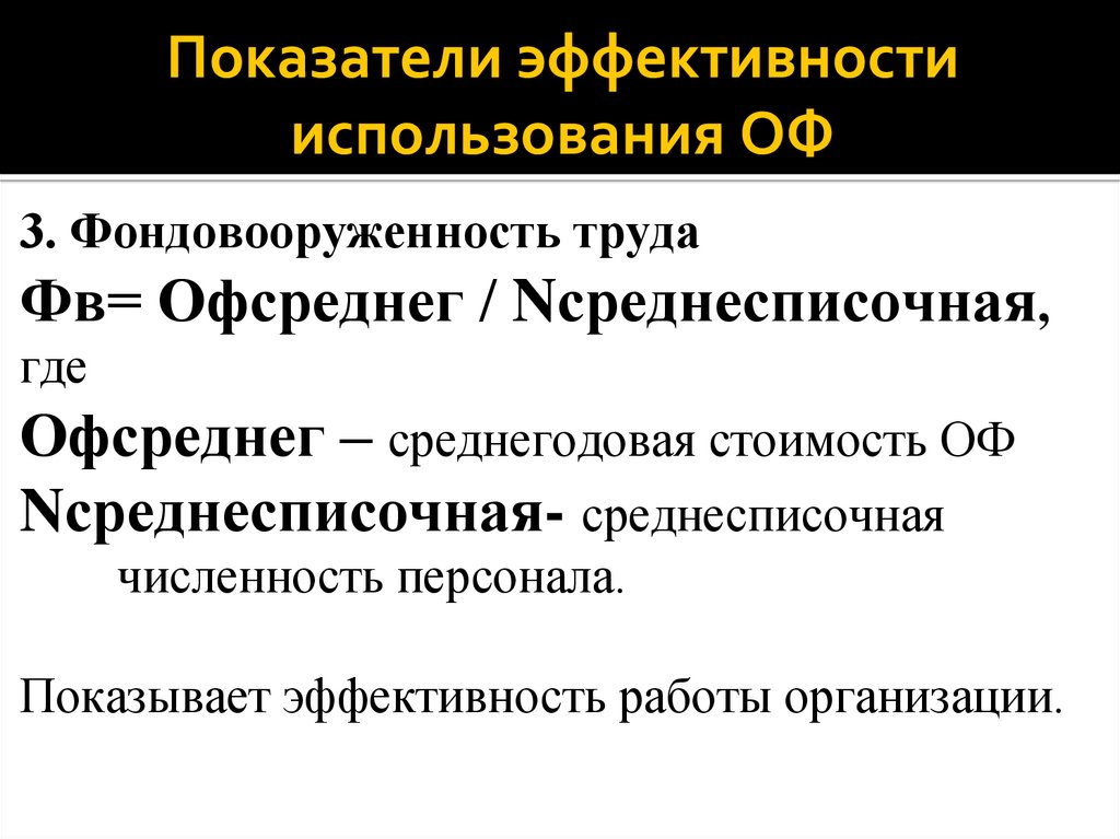 Показатели эффективностииспользования ОФ (ОС) предприятия
