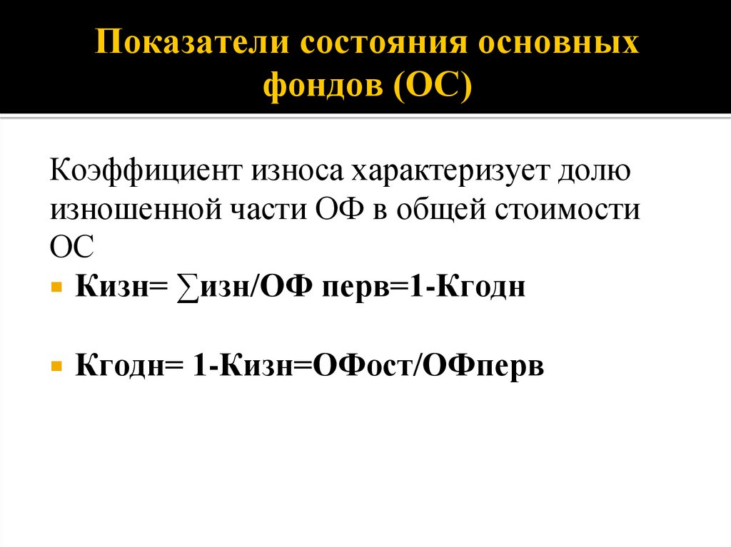 Кгодн= 1-Кизн=ОФост/ОФперв
