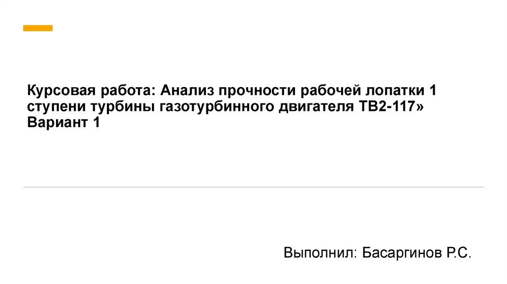 1. Курсовая работа: Анализ прочности рабочей лопатки 1 ступени турбины газотурбинного двигателя ТВ2-117» Вариант 1