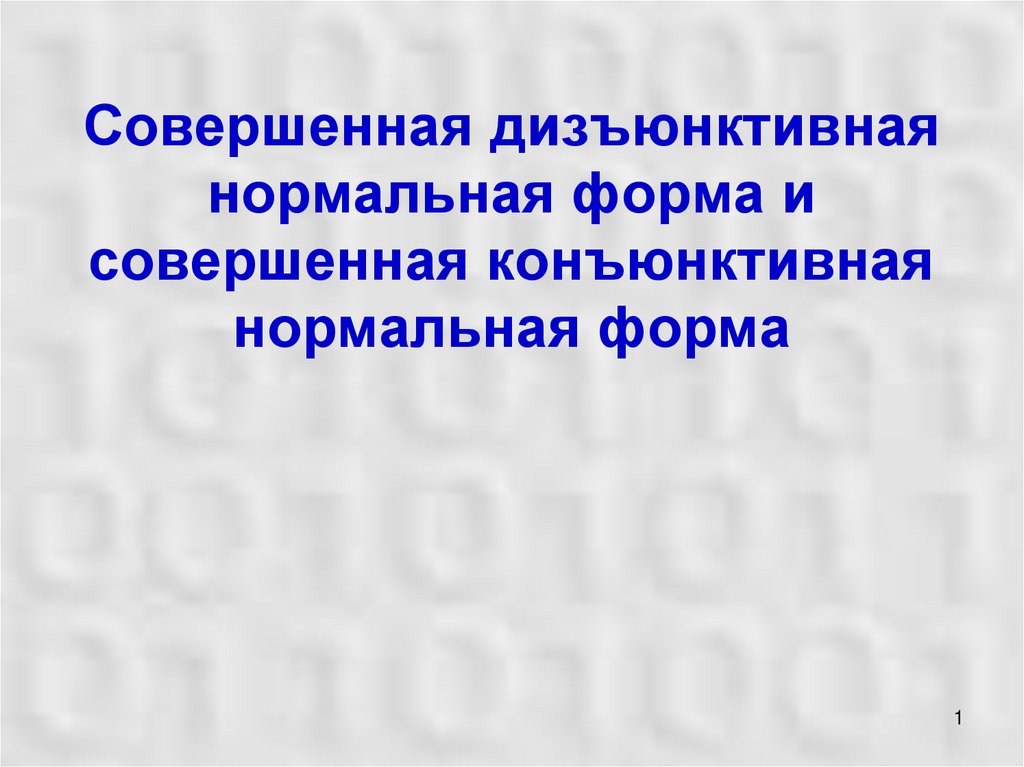 1. Совершенная дизъюнктивная нормальная форма и совершенная конъюнктивная нормальная форма