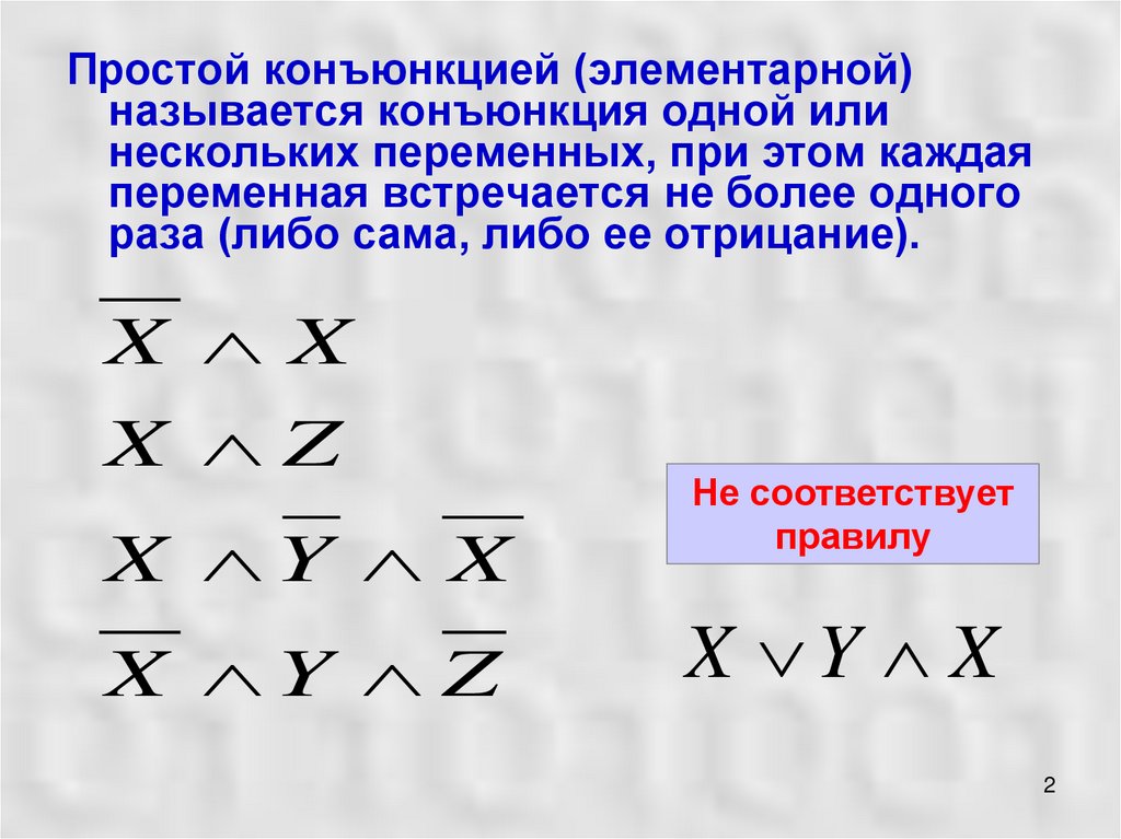 Простой конъюнкцией (элементарной)называется конъюнкция одной или