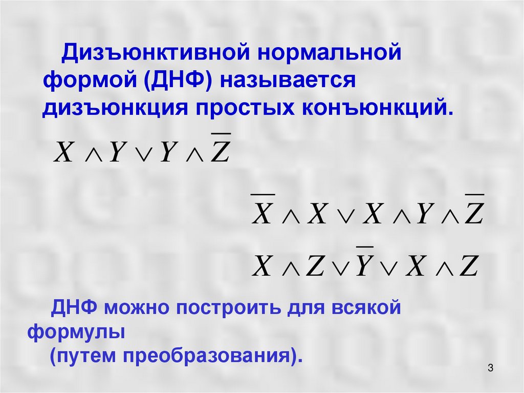 Дизъюнктивной нормальнойформой (ДНФ) называется