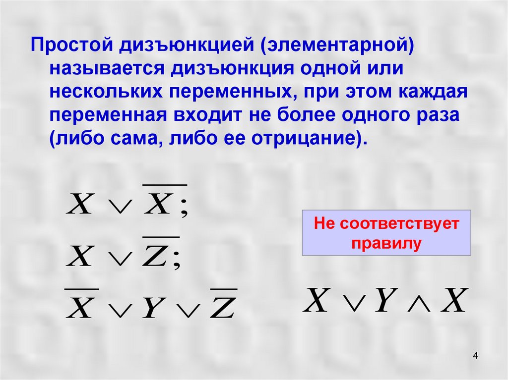 Простой дизъюнкцией (элементарной)называется дизъюнкция одной или
