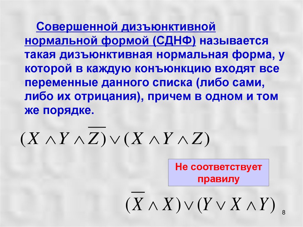 Совершенной дизъюнктивнойнормальной формой (СДНФ) называется