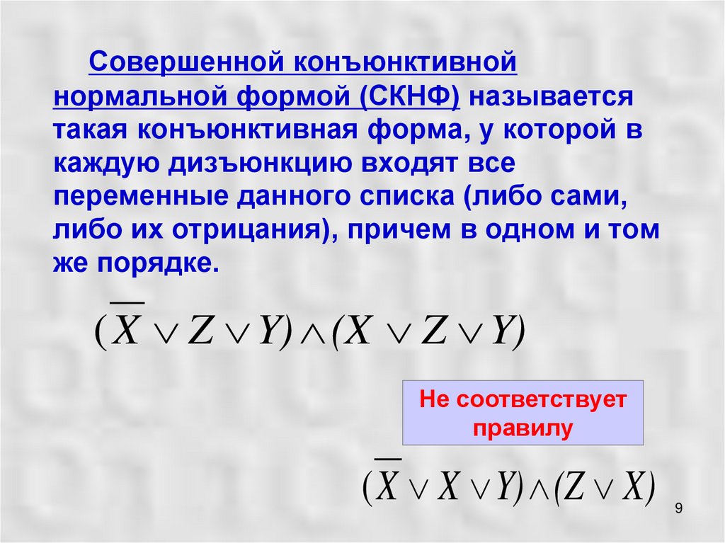 Совершенной конъюнктивнойнормальной формой (СКНФ) называется