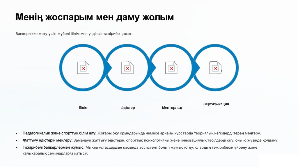 Менің жоспарым мен даму жолымБапкерлікке жету үшін жүйелі білім мен үздіксіз тәжірибе қажет.