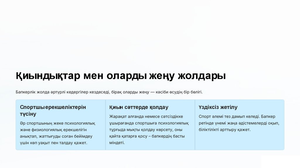 Қиындықтар мен оларды жеңу жолдарыБапкерлік жолда әртүрлі кедергілер кездеседі, бірақ оларды жеңу — кәсіби өсудің бір бөлігі.