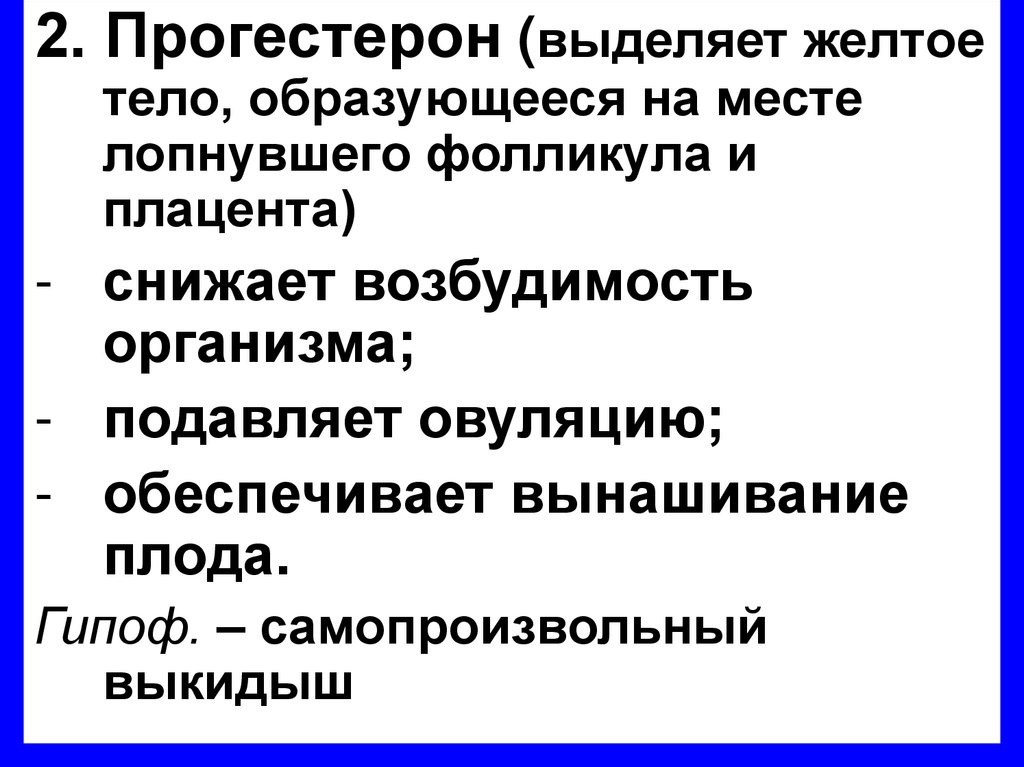 2. Прогестерон (выделяет желтоетело, образующееся на месте