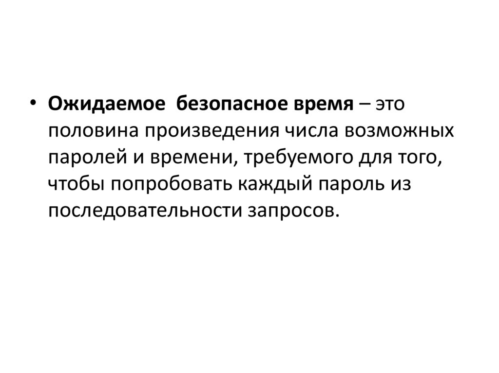 • Ожидаемое безопасное время – этополовина произведения числа возможных