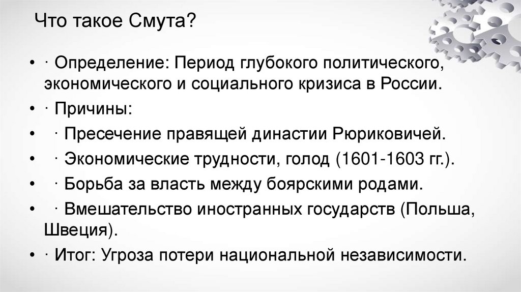 Что такое Смута?• · Определение: Период глубокого политического,