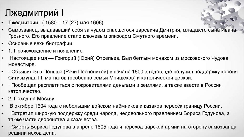 • 3)Лжедмитрий I (или Григорий Отрепьев).
