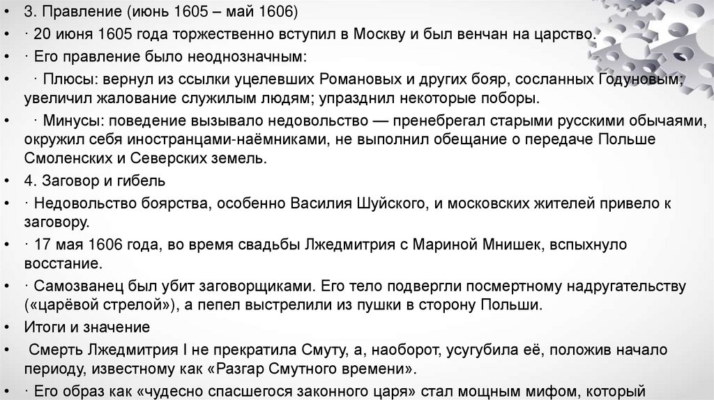 • · Его правление — "царство боярское". Столкнулся с