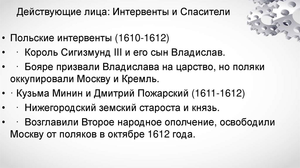 Действующие лица: Интервенты и Спасители• Польские интервенты (1610-1612)