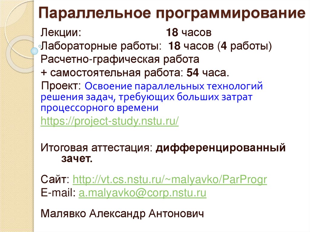 Сайт: http://vt.cs.nstu.ru/~malyavko/ParProgr