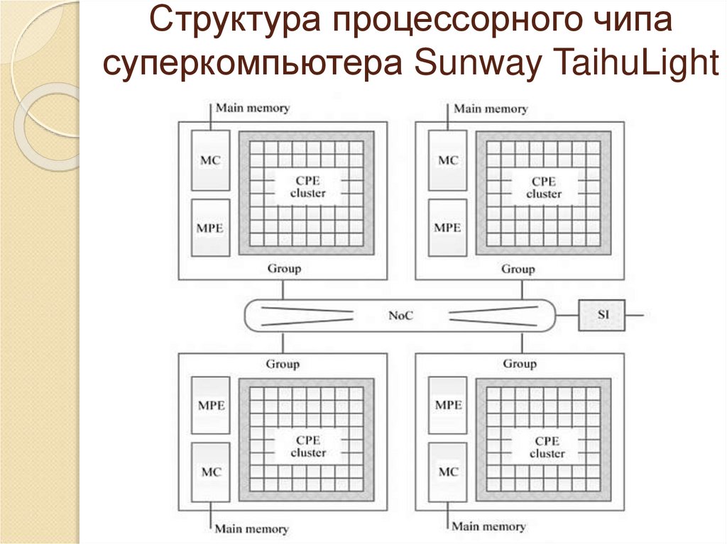 Структура процессорного чипасуперкомпьютера Sunway TaihuLight