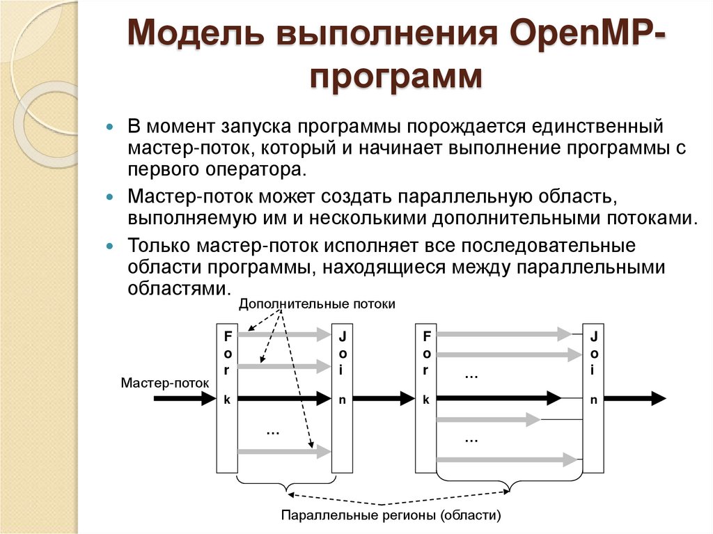 Модель выполнения OpenMPпрограммВ момент запуска программы порождается единственный