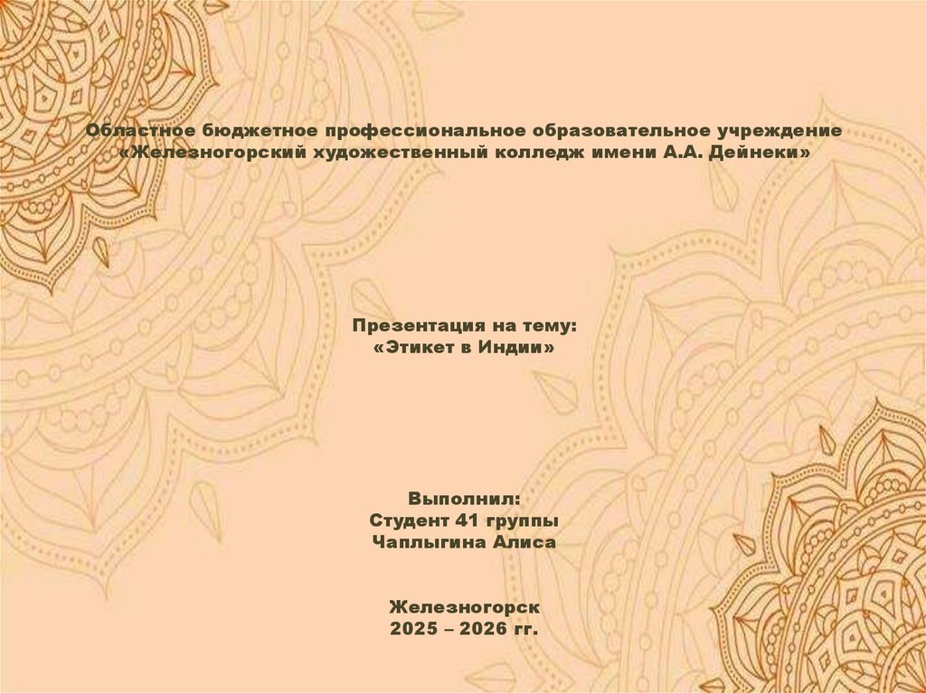 1. Областное бюджетное профессиональное образовательное учреждение «Железногорский художественный колледж имени А.А. Дейнеки»