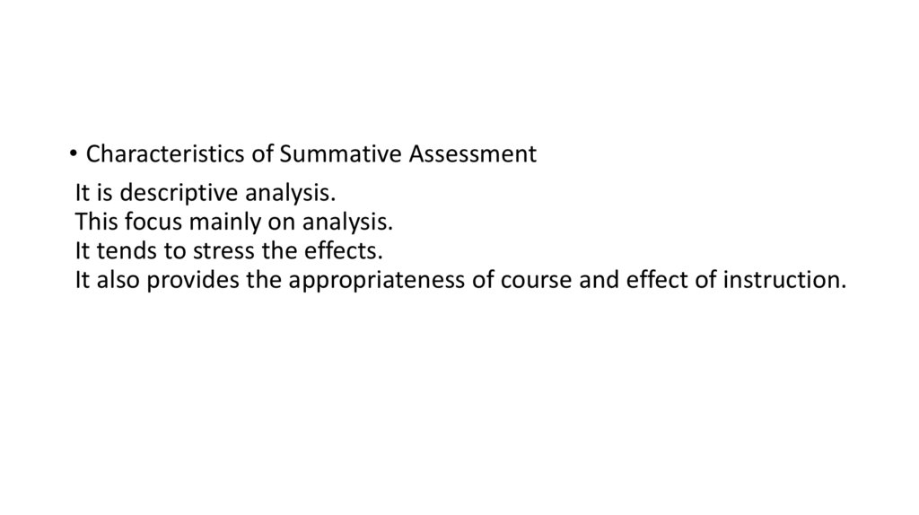• Characteristics of Summative AssessmentIt is descriptive analysis.