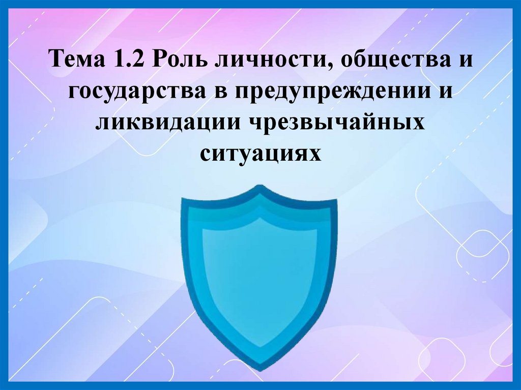 Тема 1.2 Роль личности, общества игосударства в предупреждении и