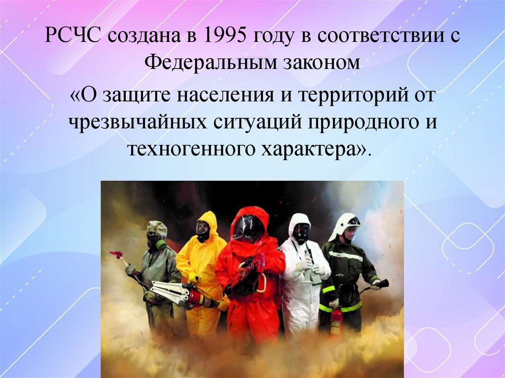 РСЧС создана в 1995 году в соответствии сФедеральным законом