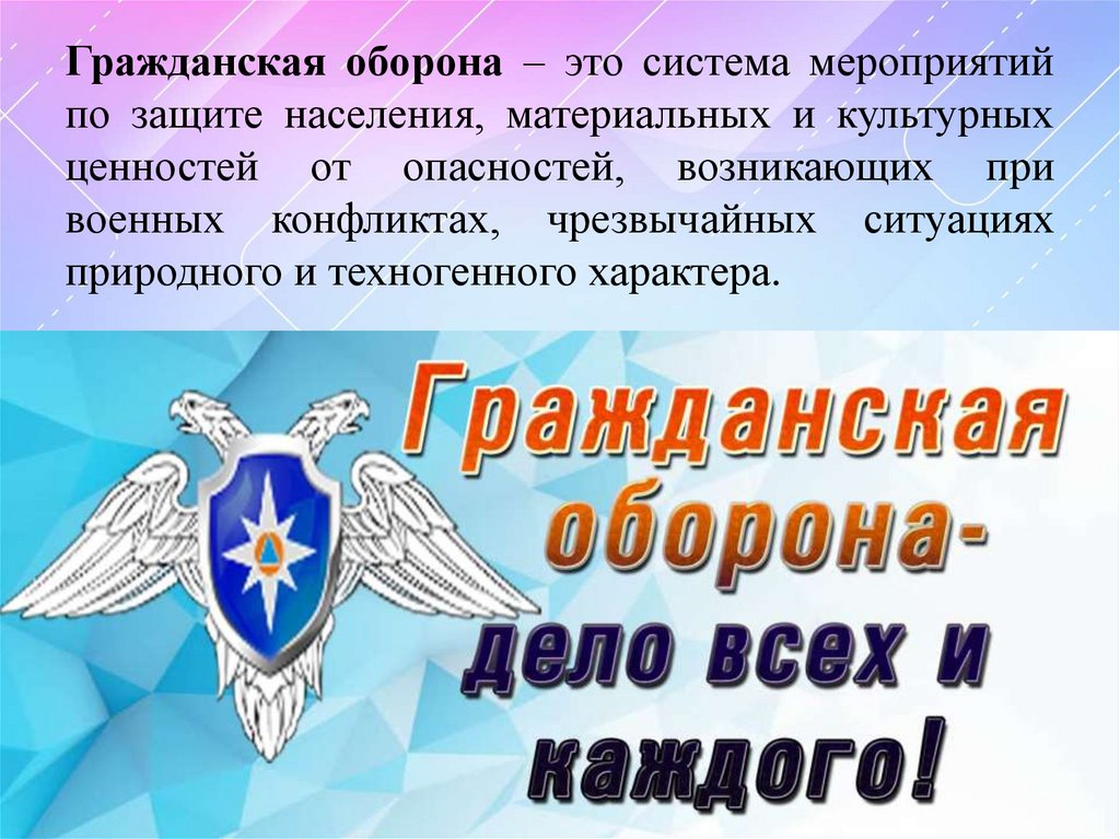 Гражданская оборона – это система мероприятийпо защите населения, материальных и культурных
