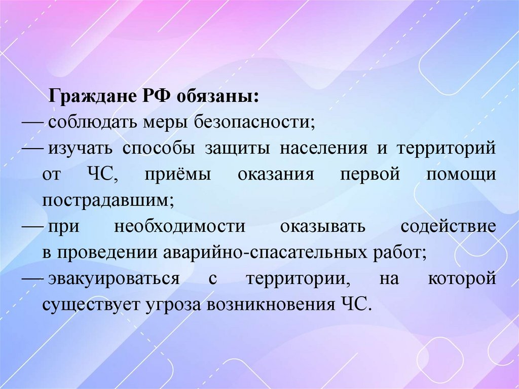 Граждане РФ обязаны:соблюдать меры безопасности;