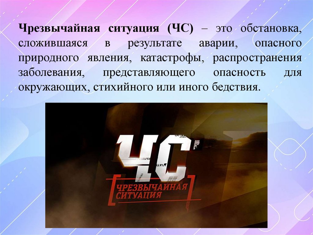 Чрезвычайная ситуация (ЧС) – это обстановка,сложившаяся в результате аварии, опасного